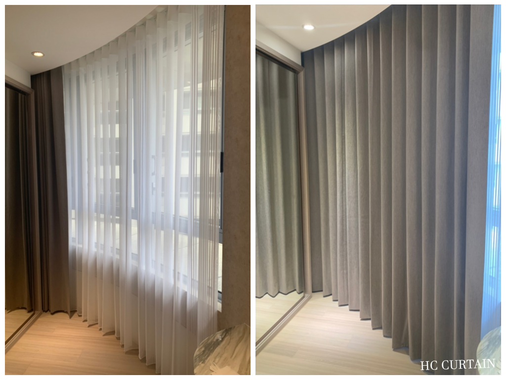 當用布料充足的情況下,窗簾不需要熨燙,即可呈現完美S型,以下是實景照,尚未熨燙就有完美弧度,也省下熨燙費用。