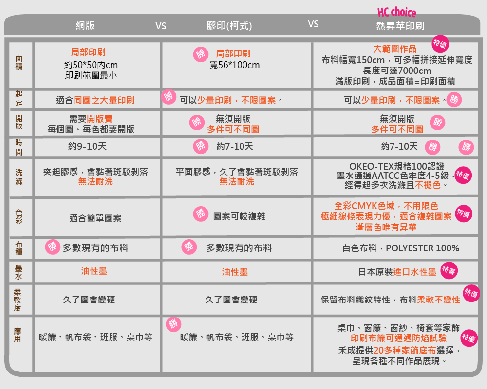 我們只使用熱昇華印刷