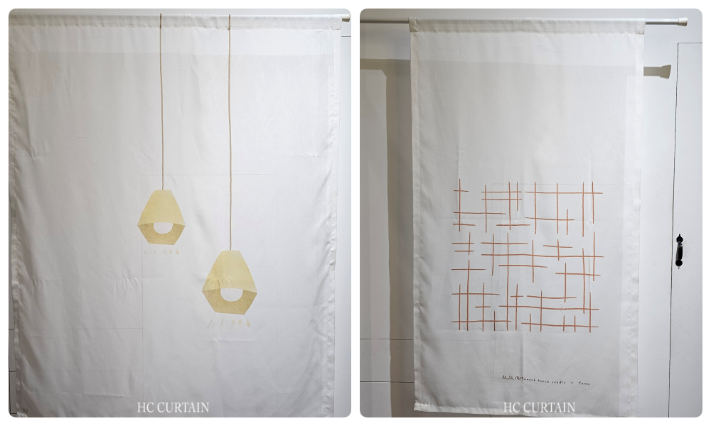 印刷窗簾 攝影-展覽式窗紗 樣式:展覽式窗紗 上樣:上穿管 兩側:熱裁邊 下擺:包車鉛條 布種:NO.848 印刷用-窗簾用軟霧透紗 說明: 高級車工-透明線收邊(車線透明,不影響圖像色彩)。 下擺包鉛條,增加垂重、不易輕飄飄,讓布面更加直順。 兩側熱裁,因窗紗的透影性,若車縫折邊收邊會造成疊影,使用熱裁邊且不虛邊。