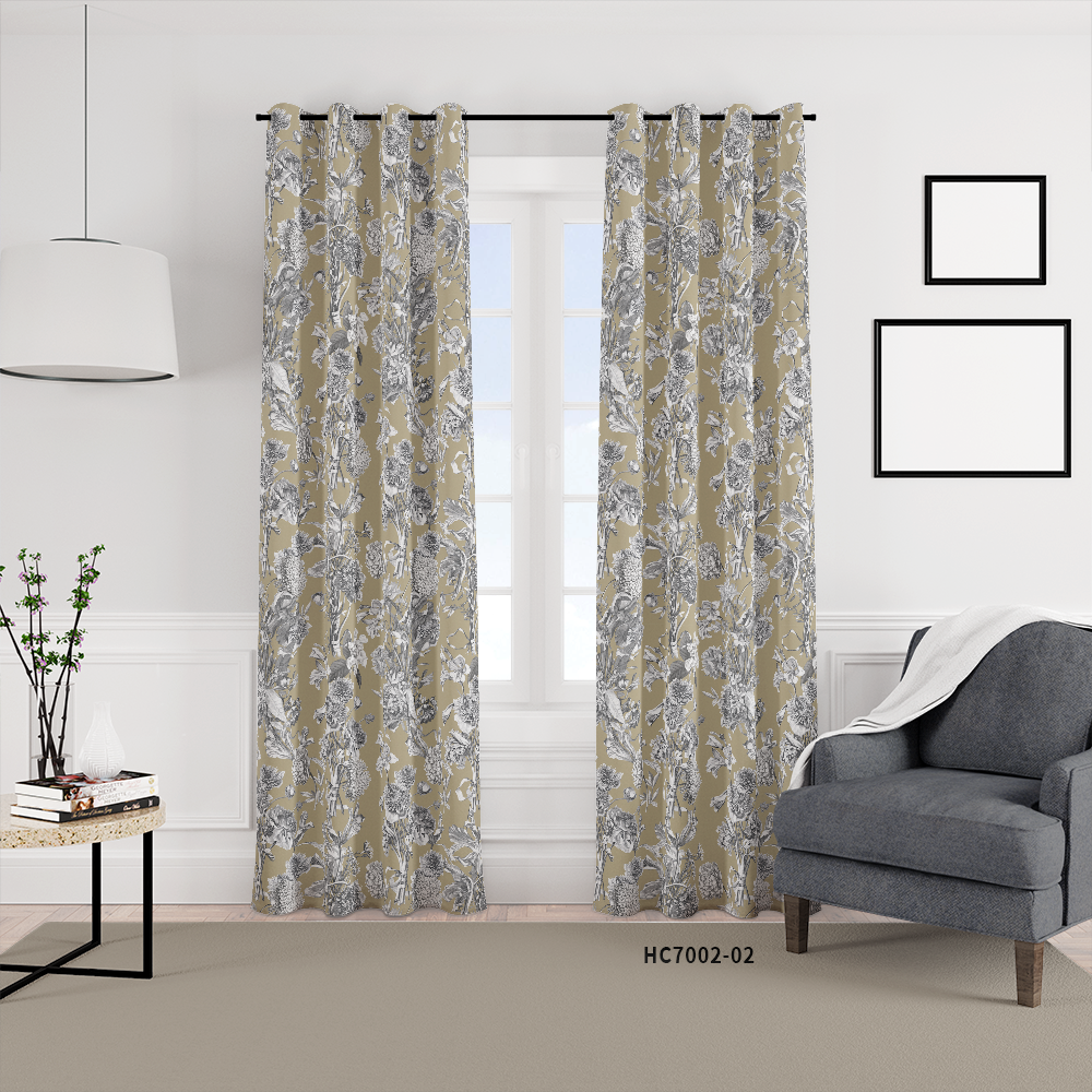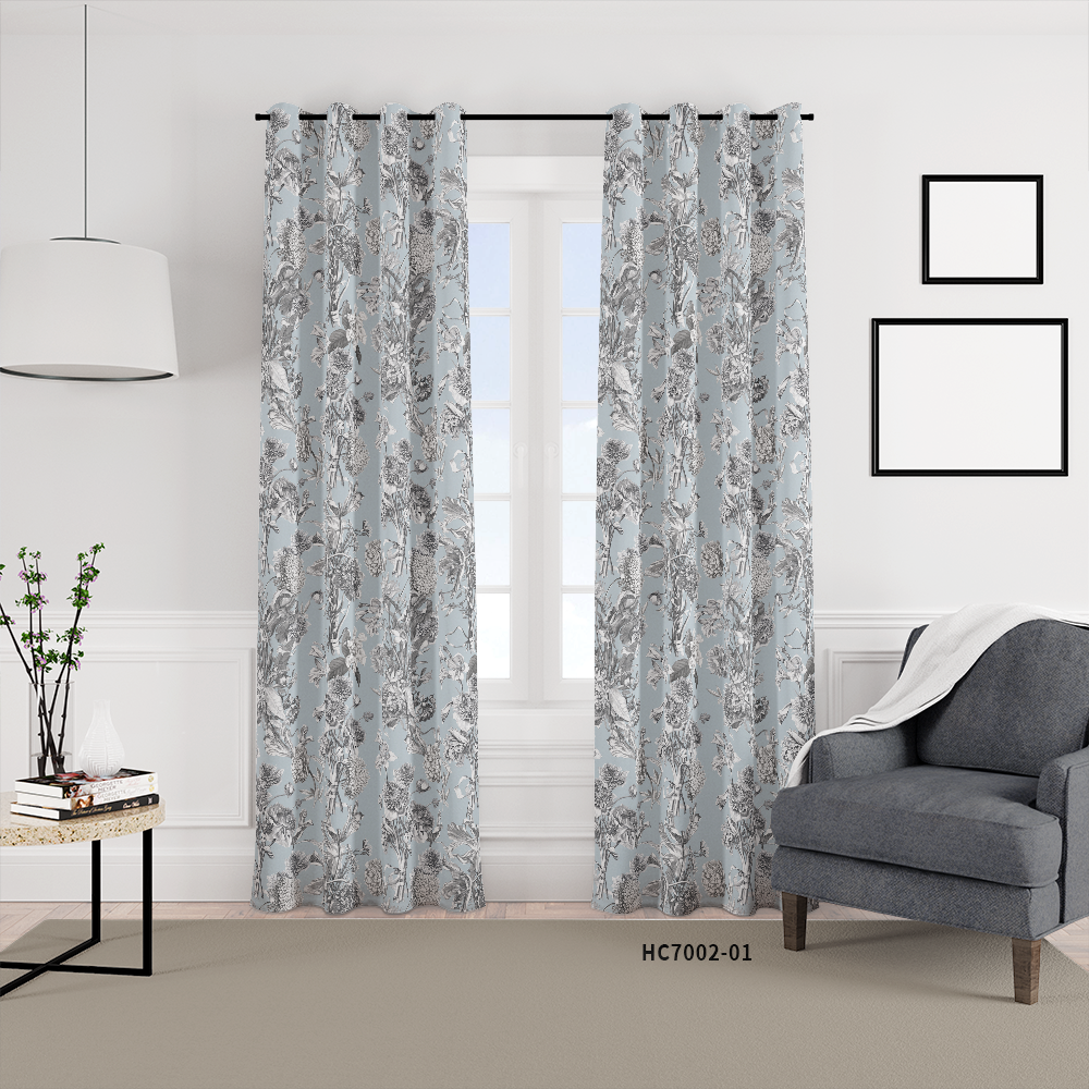 HC印花窗簾 HC7002 Toile Fleurie Design-black 黑白色印花維多利亞花卉