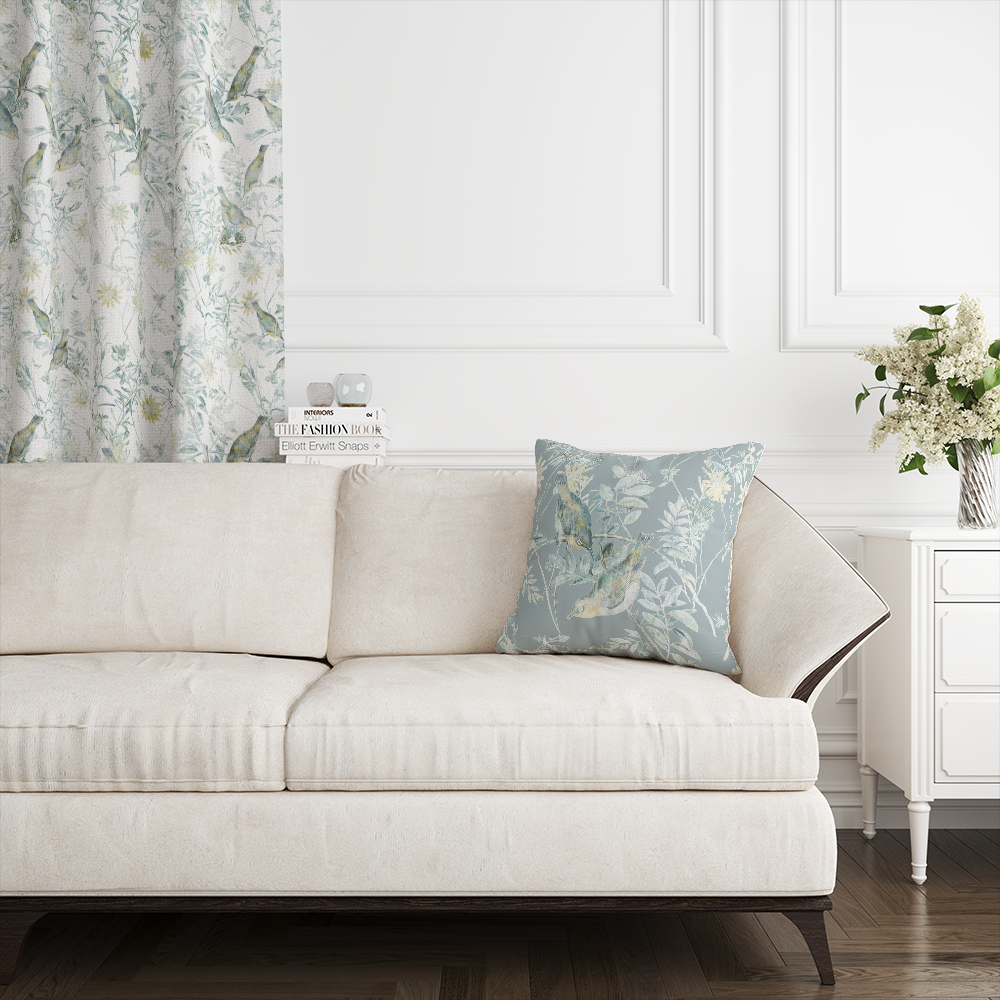 微風吹動薄霧 柔紗輕觸臉龐 夕陽灑入滿室 光影交織幸福