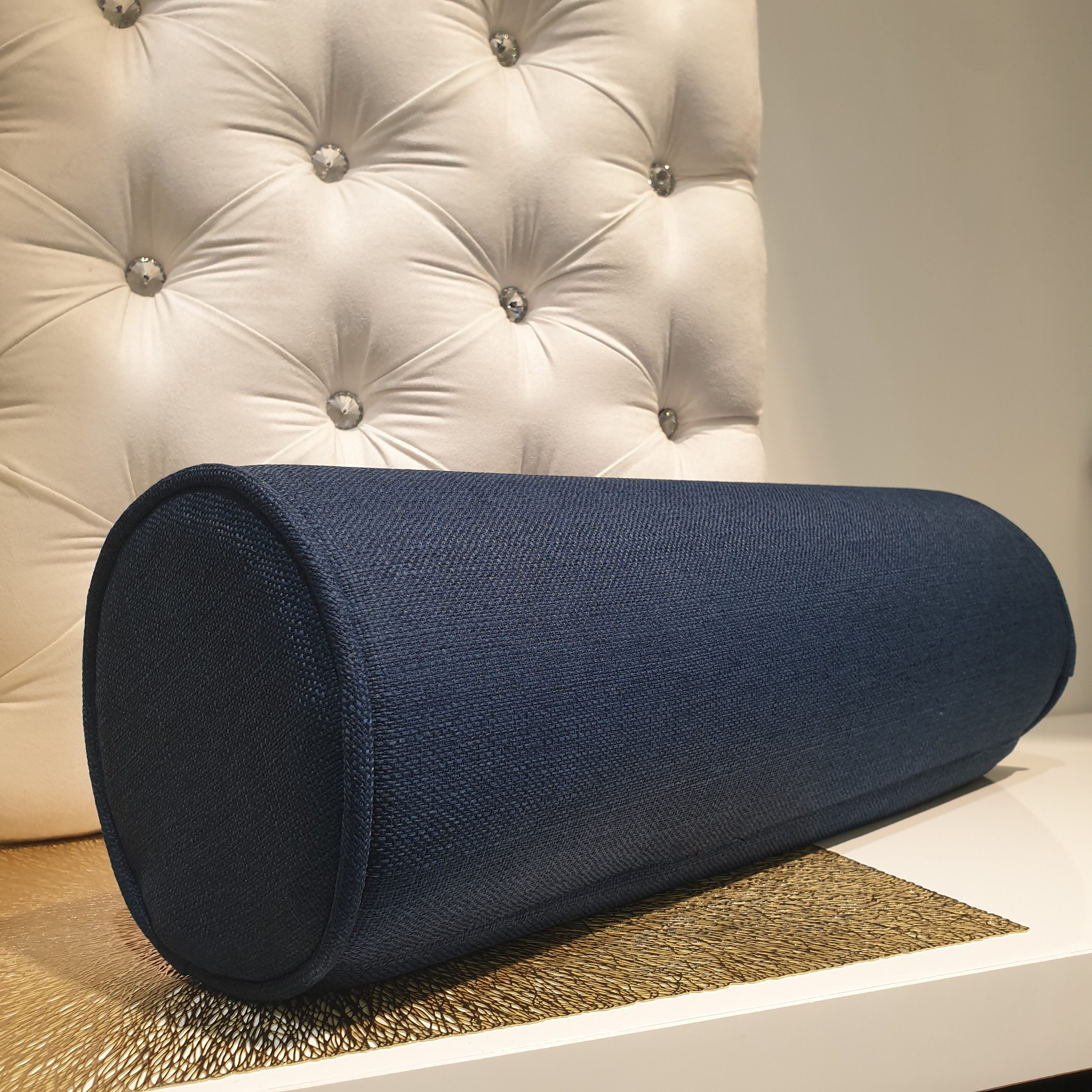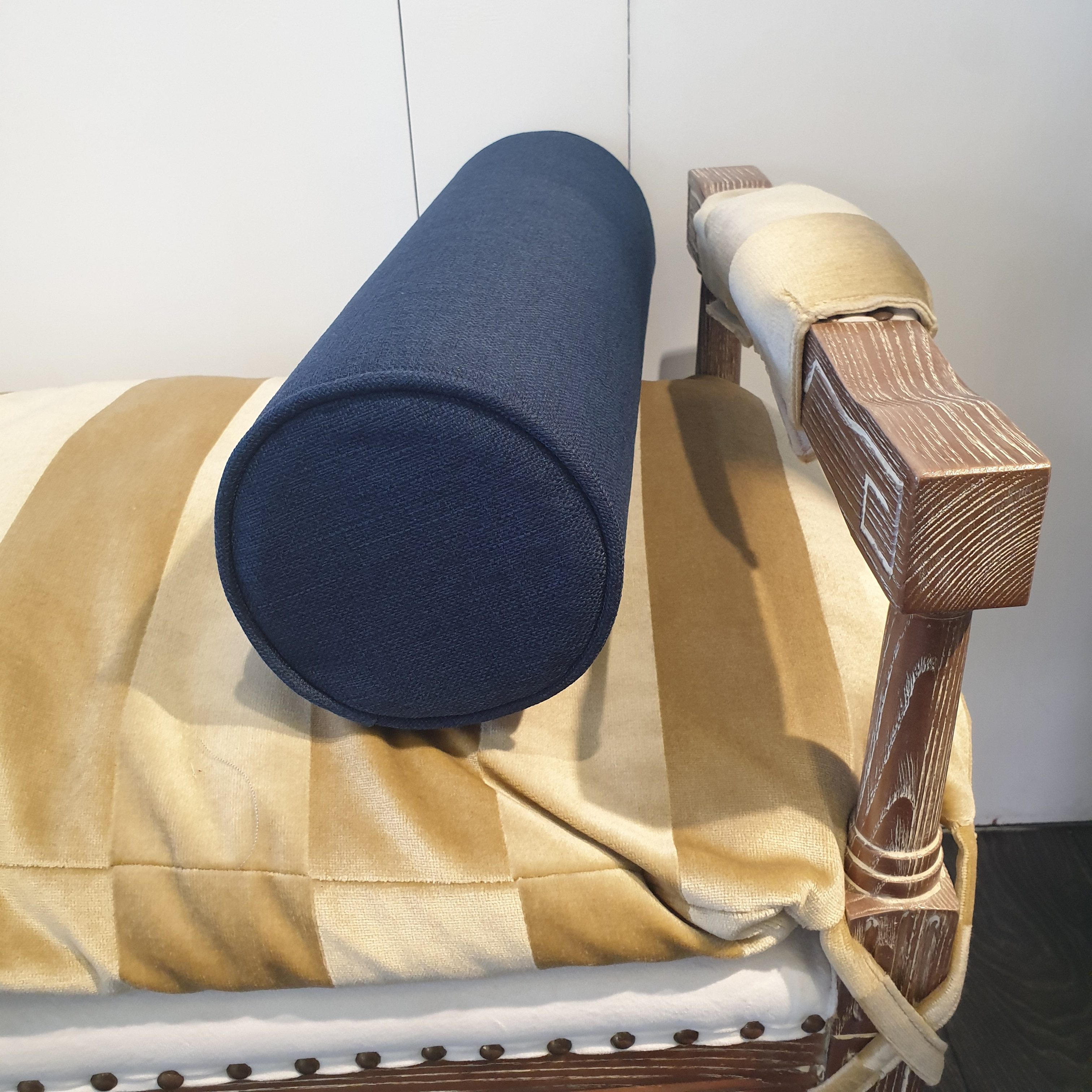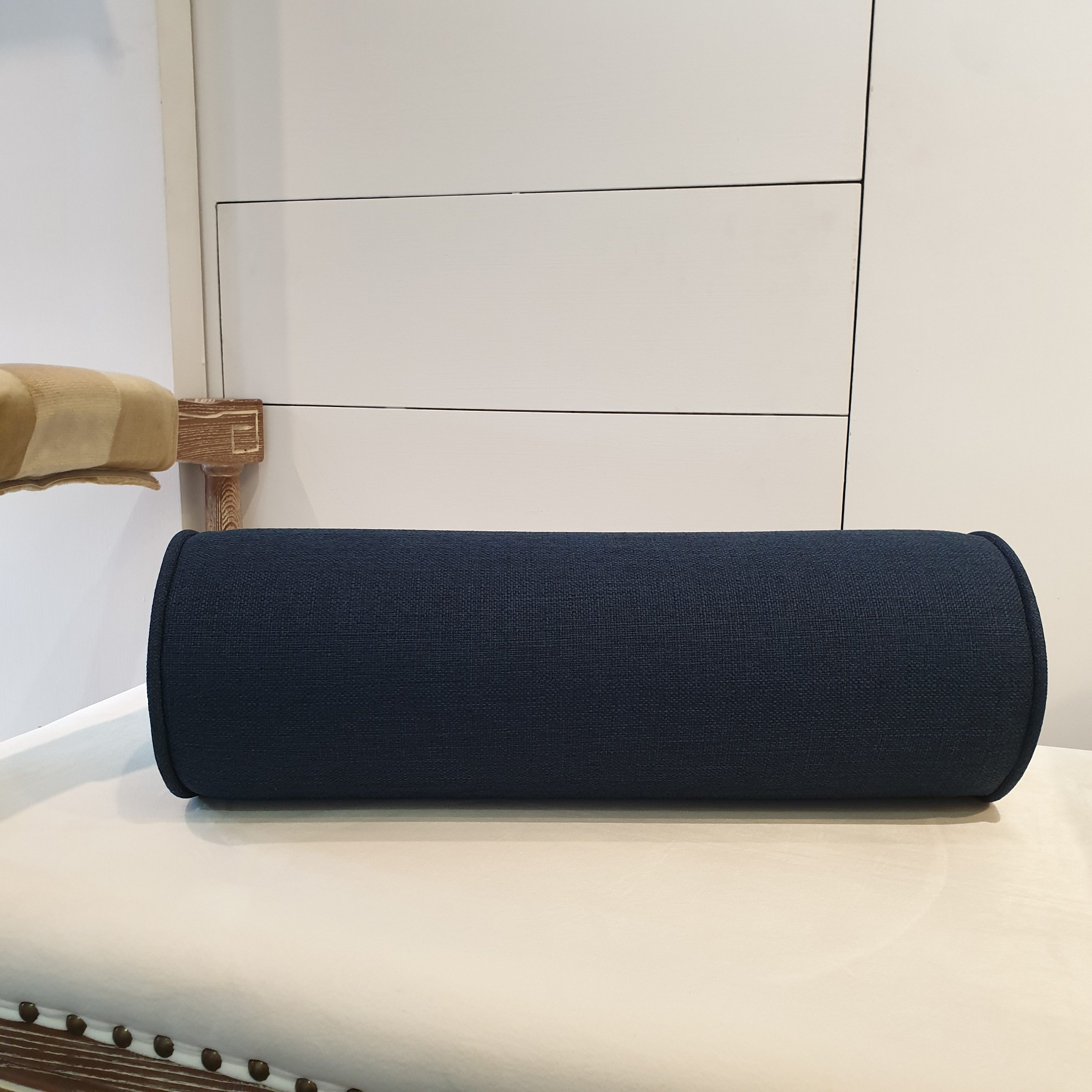素色 亞麻編織沙發布 圓柱枕