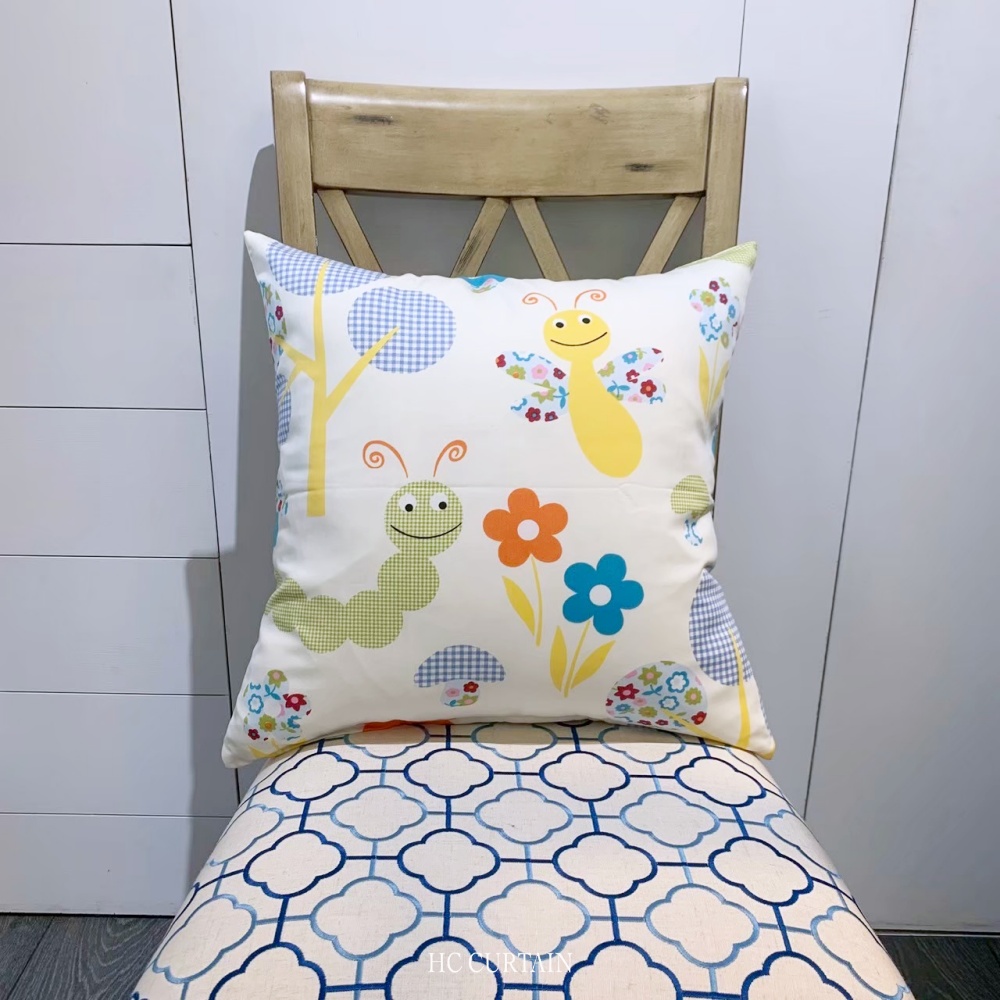 抱枕套 歐美進口純棉家飾布 貓頭鷹 毛毛蟲 童趣