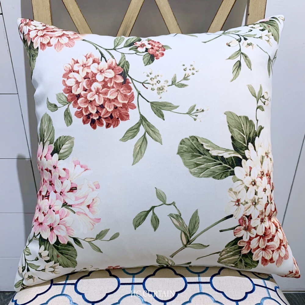 抱枕套 印花家飾布 繡球花 磚紅 粉花