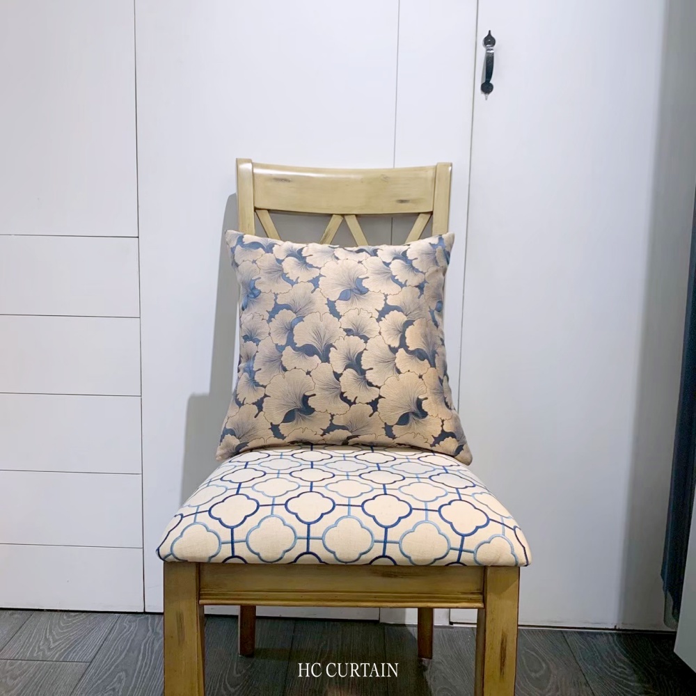 抱枕套 銀杏緹花布-藍底米金葉