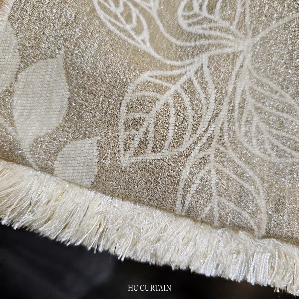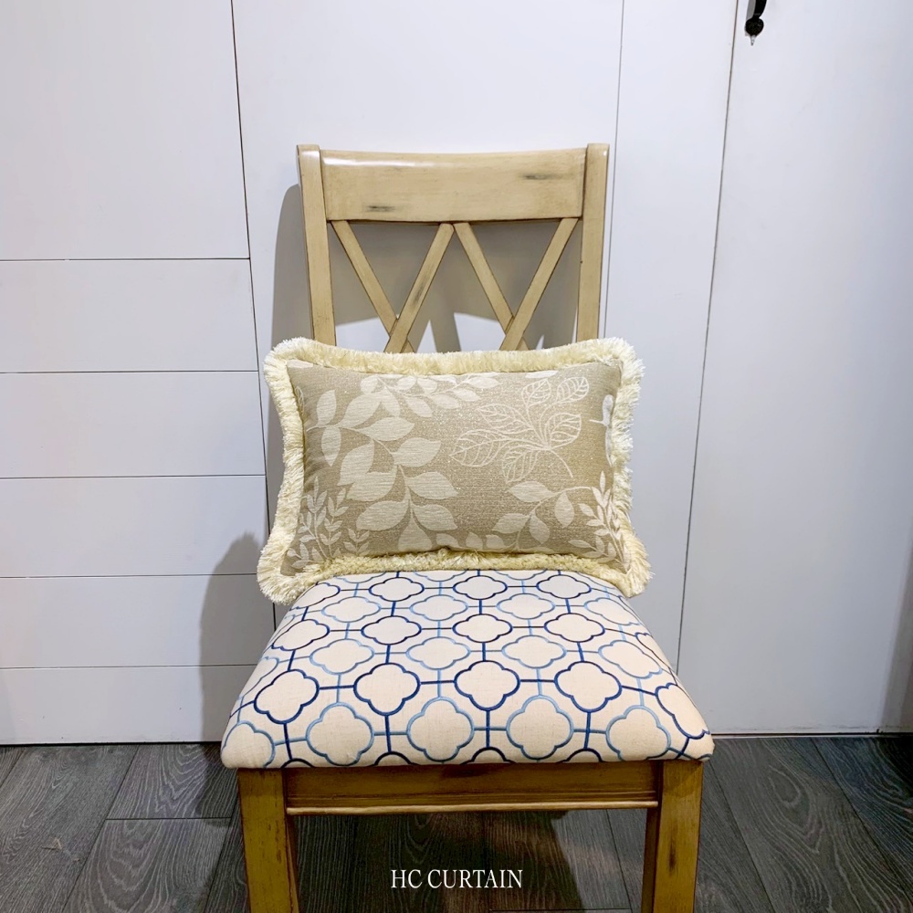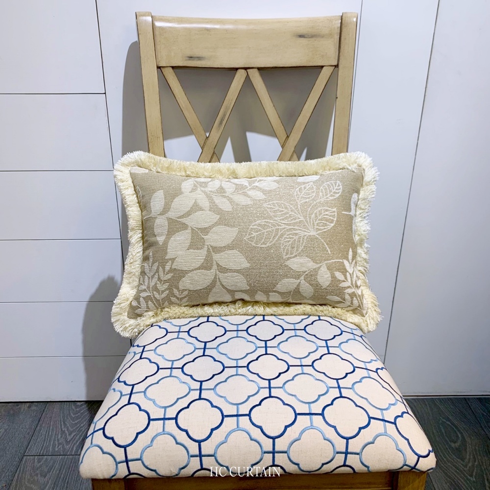 腰枕套 緹花沙發布 銀蔥 流蘇滾邊 米咖