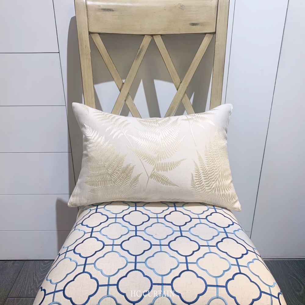 腰枕套 英國進口緹花 蕨葉緹花 白
