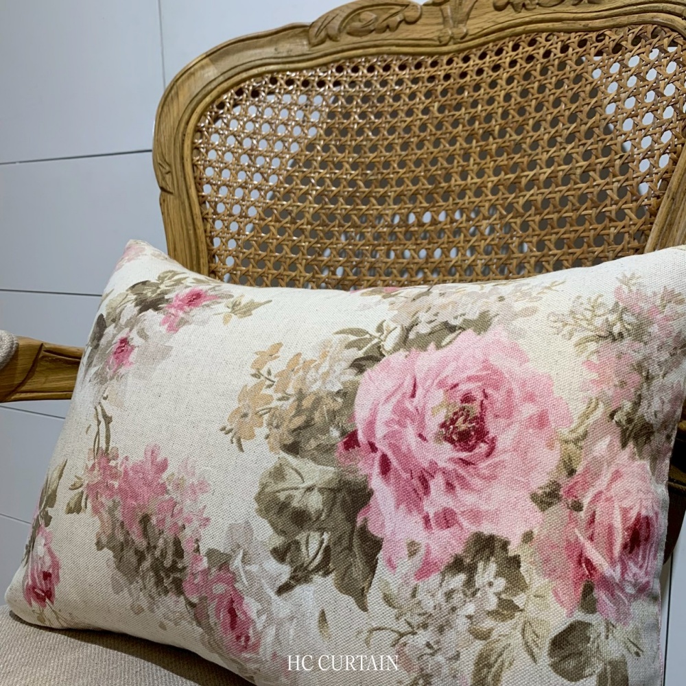 腰枕套 西班牙進口棉麻家飾布 紅玫瑰花