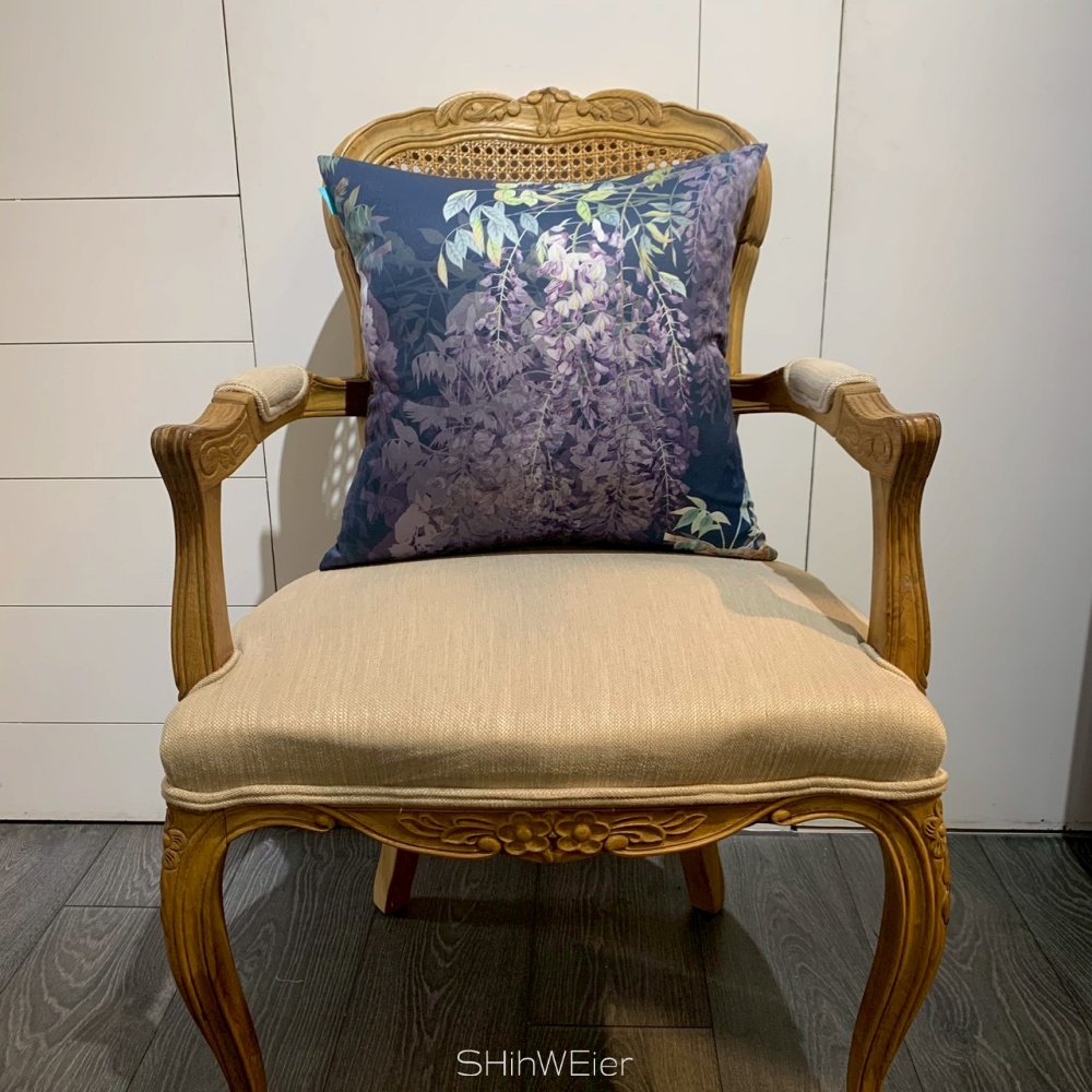 SHihWEier®原創印花抱枕套 現貨 HC1111 紫藤 深藍底